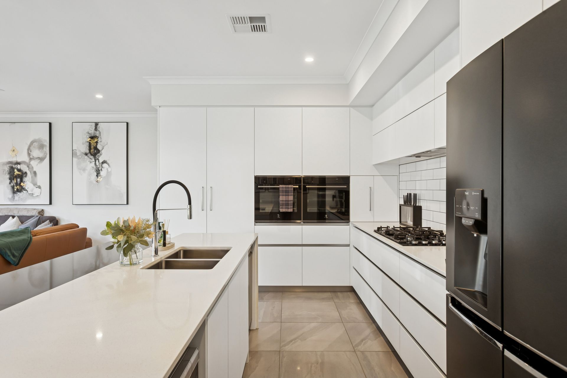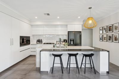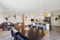 At the heart of the home is the spacious, well-equipped kitchen showcasing quality Electrolux appliances, stone benchtops and a built-in pantry. Overlooking the open plan living and dining area, this space flows seamlessly to the alfresco, creating a private and inviting setting to relax or entertain.