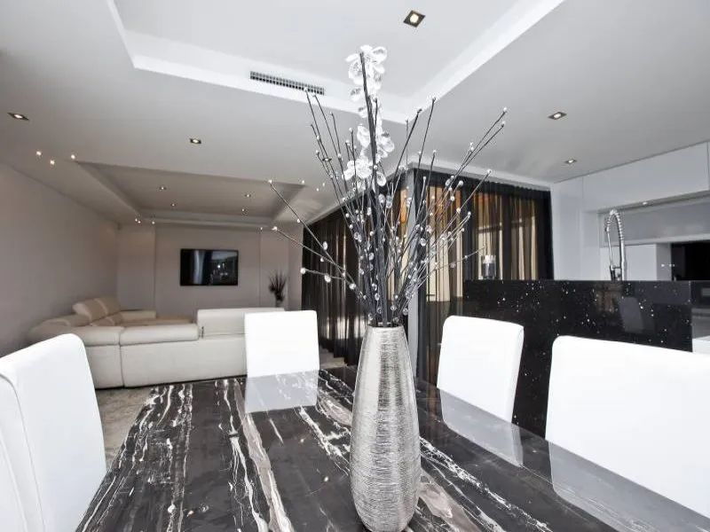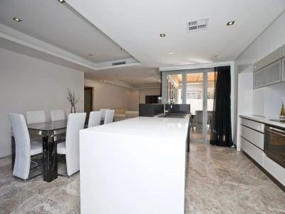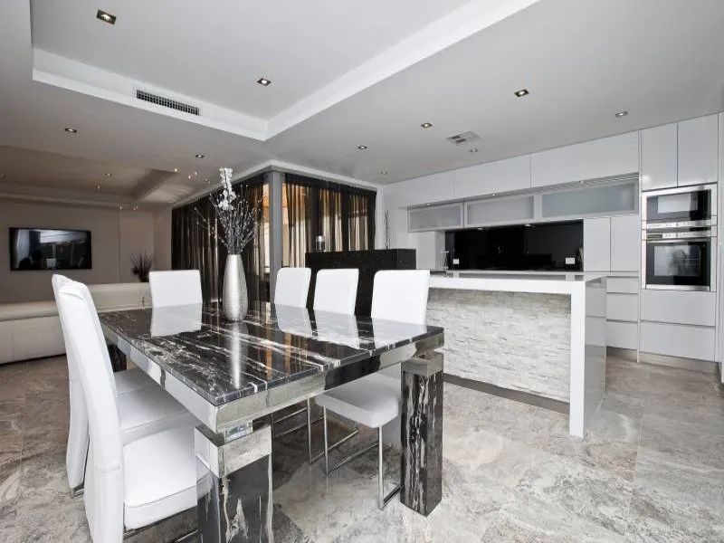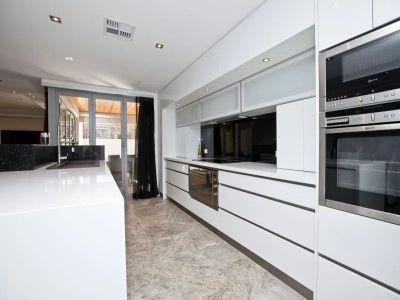 Kitchen with stone bench tops