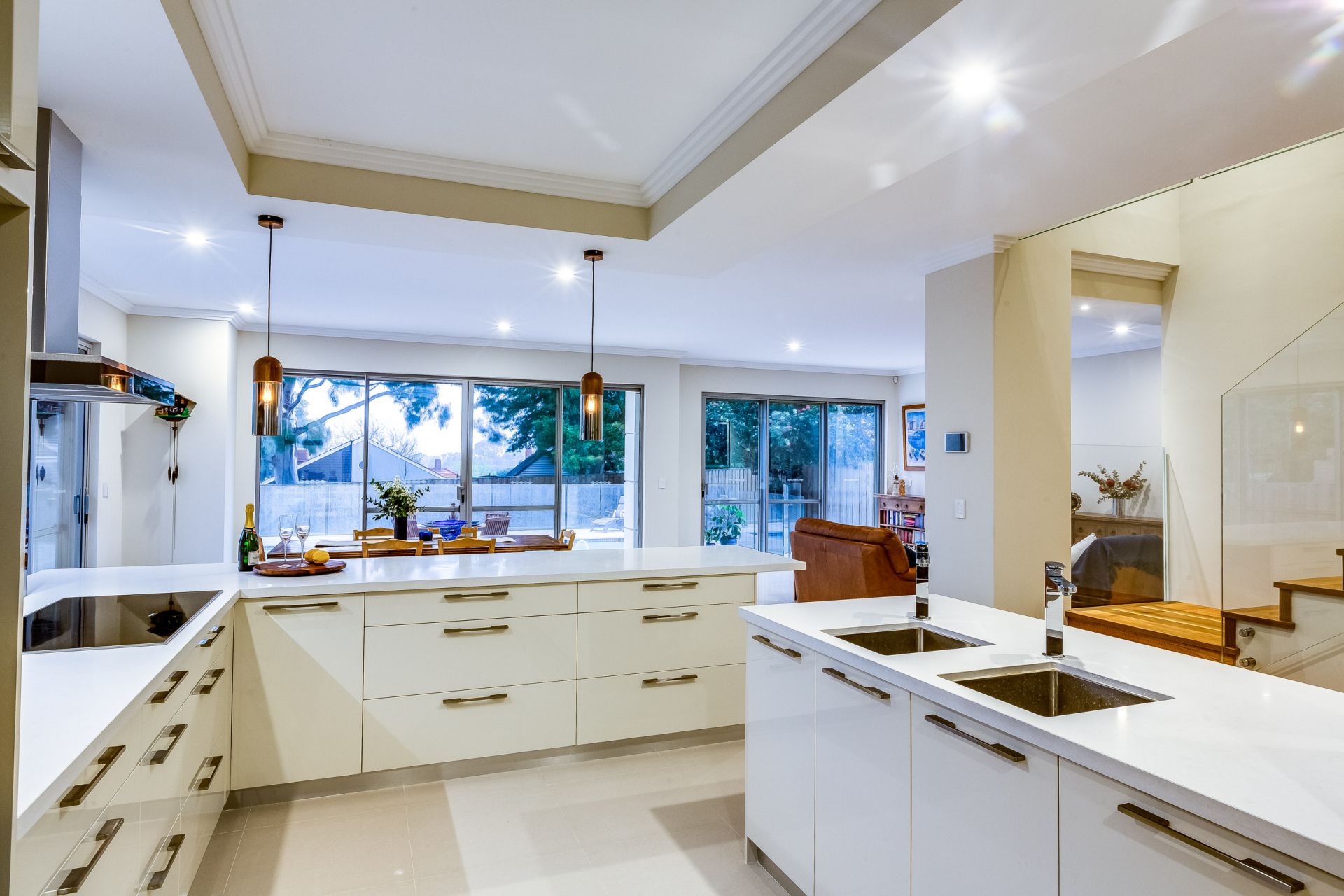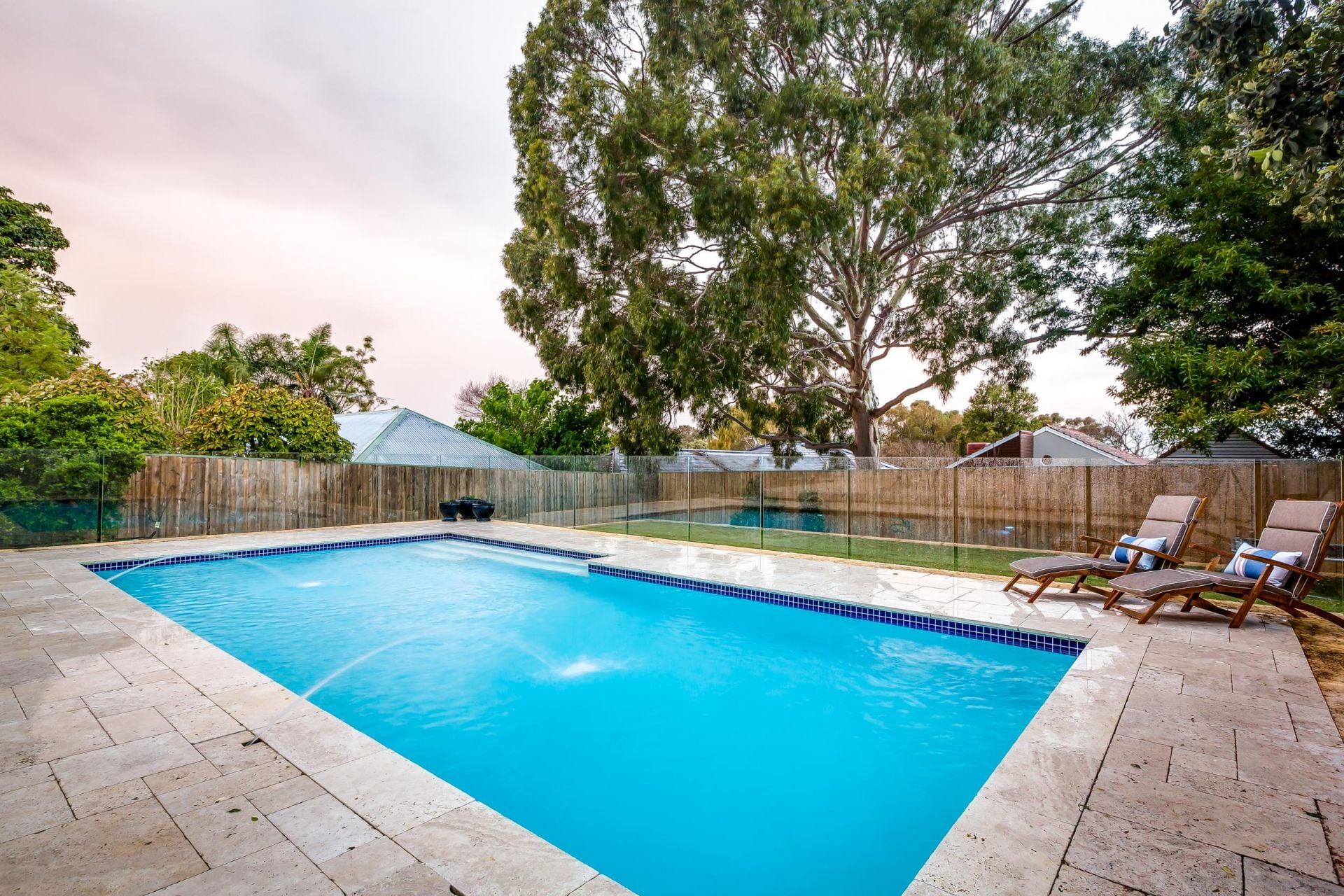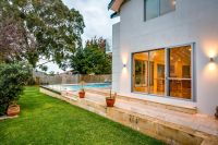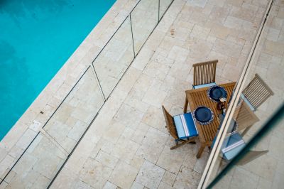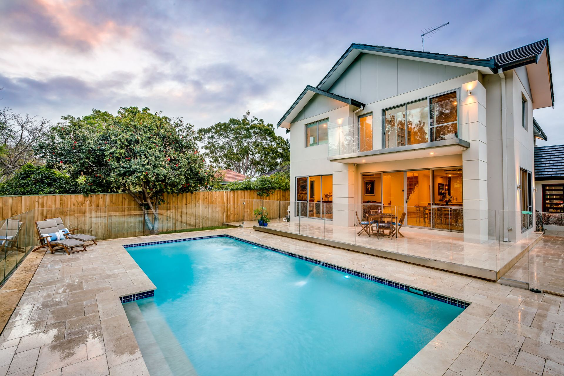 Step outside and discover your very own resort-style haven. A crystal-clear frameless glass balustrade frames uninterrupted views of the sparkling swimming pool and tranquil sunken garden, delivering a seamless connection between indoor living and outdoor relaxation. The alfresco space, finished with elegant French-pattern travertine, brings a sophisticated Mediterranean ambiance, while the surrounding low-maintenance native gardens provide beauty without the upkeep.