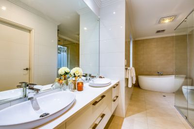 Adjoining Ensuite with double basins and step into bath